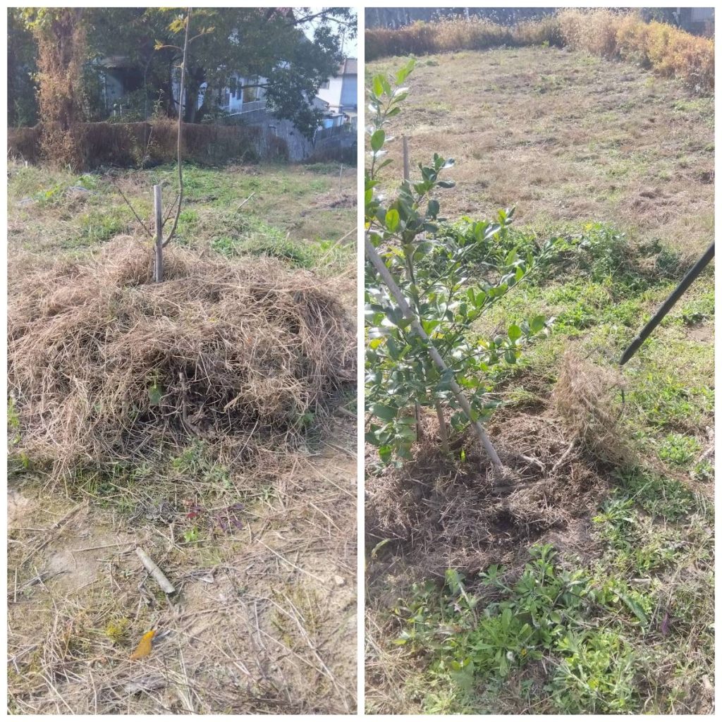 水やり、草刈りと毎日頑張っていますが、今日は寒さ対策を行いました。