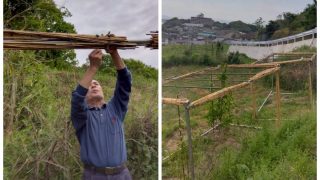 北浦菜園2026年4月24日サルナシの棚を加工しました