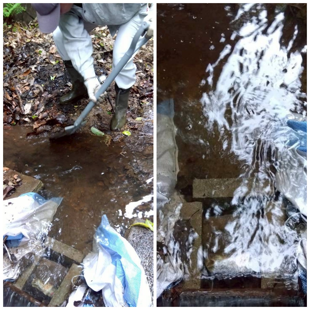 水やりを山の上でするには大変ですので、水路の掃除をしました。
